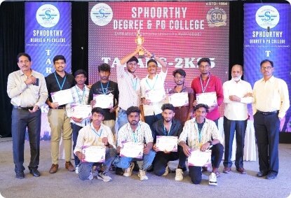 At Sphoorthy Degree & PG College, campus life is more than just academics! We offer a vibrant environment where students engage in cultural clubs, exciting events, and specialized training programs that enhance both personal and professional growth. From tech fests to leadership workshops, and extracurricular activities to assured placement training, we ensure a holistic college experience that shapes future-readyย graduates.
